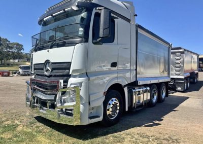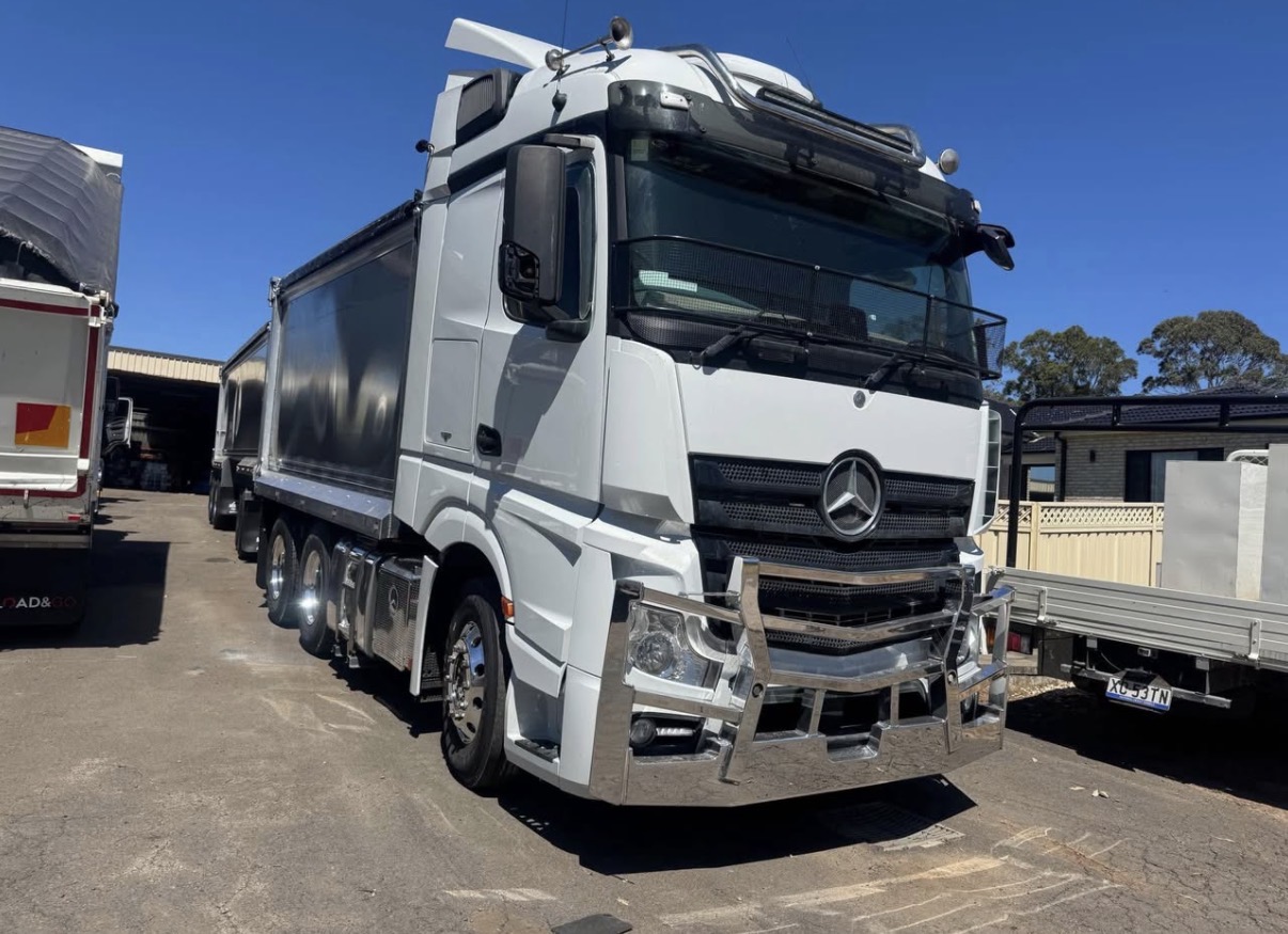 Very tidy 2018 Mercedes Actros paired with a brand new 2025 Meridian quad trailer – genuine low kms, full rebuild completed and fully set up for grain or bulk work.